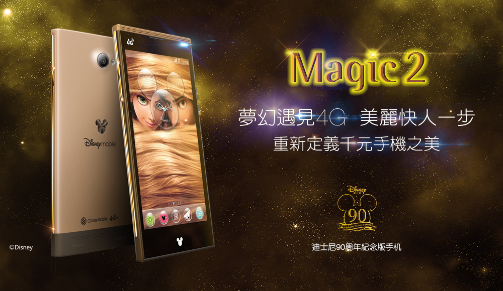 迪士尼90週年紀念版手機 Magic 2 夢幻上市,5寸HD屏、高通曉龍4核,夢幻4G美麗快人一步,